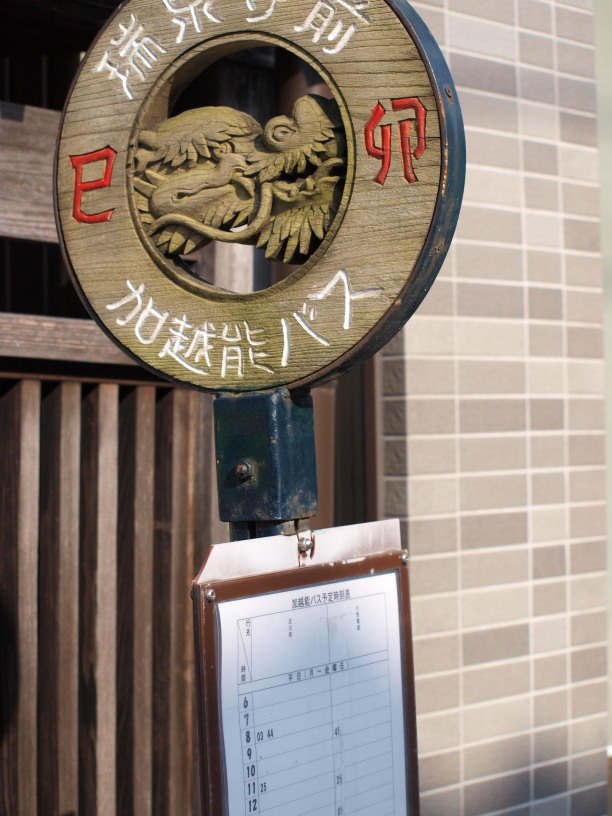 けろりーなは知りませんでしたが、井波はどうやら「井波彫刻」という、木彫り彫刻で有名な町らしいです。確かに町の大通りを歩くと、お店の看板や表札やバスストップまで、立派な彫刻で作られていました。