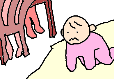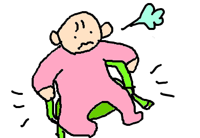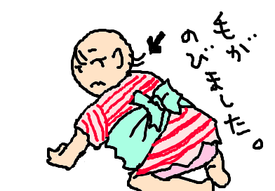 けろ子はバタフライはいはい(両手で体を前に持っていく)をするのですが、それでひょこひょこ進む姿は、「けろ子」だけにカエルそっくり…(^^;