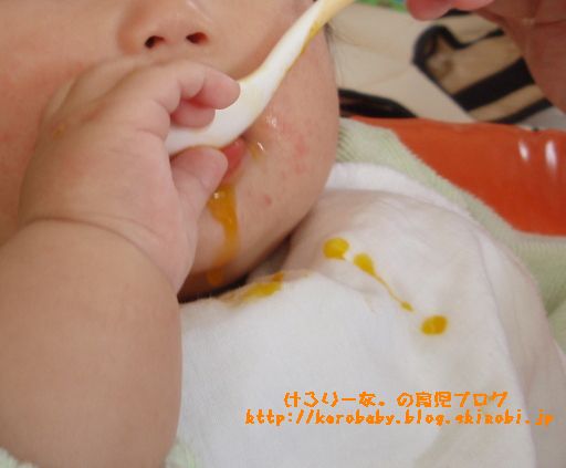 けろ子は今、離乳食初期の初期で、お粥しか食べたことがありません。