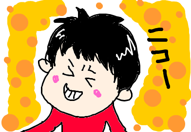眉間にシワを寄せながら 顔をギューッとすぼませ、ニコーっと笑ってくれます。